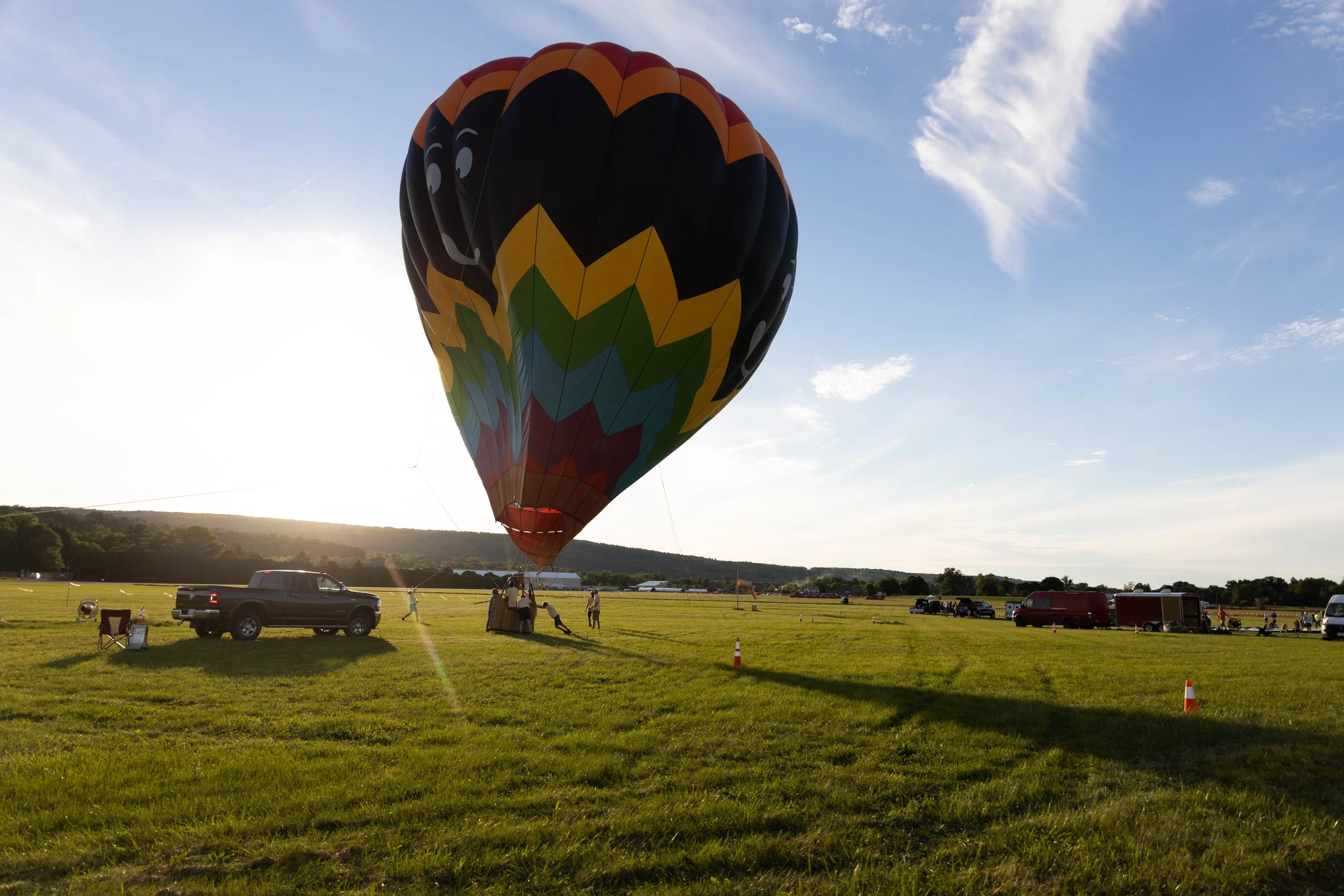 Workers at the New York State Festival of Balloons in Danville, N.Y. prepare a hot air balloon for guests to ride in on Sept. 2, 2022. Each year friends and families gather at the festival to enjoy food, browse vendors, listen to live music, and take a ride in a hot air balloon. Profits from the event are shared with local charities and organizations.